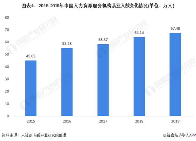 近年來,我國人力資源服務(wù)機構(gòu)從業(yè)人數(shù)逐年增長,2019年,我國人力資源服務(wù)機構(gòu)從業(yè)人數(shù)達67.48萬人,創(chuàng)歷史新高。