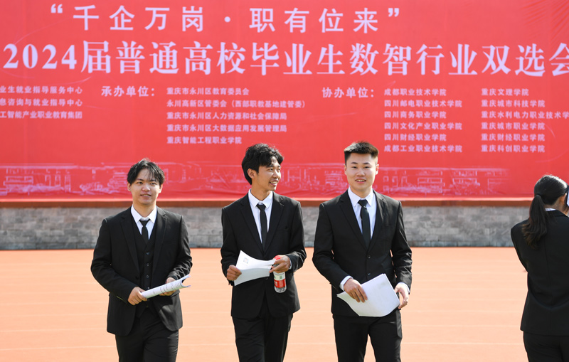 2023年10月20日,成渝地區(qū)2024屆普通高校畢業(yè)生數(shù)智行業(yè)雙選會在位于重慶永川區(qū)的重慶智能工程職業(yè)學(xué)院舉行。這是學(xué)生在雙選會上。新華社記者 王全超 攝